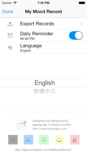 The mood records can also be exported as CSV format, which can be viewed in software such as Numbers.